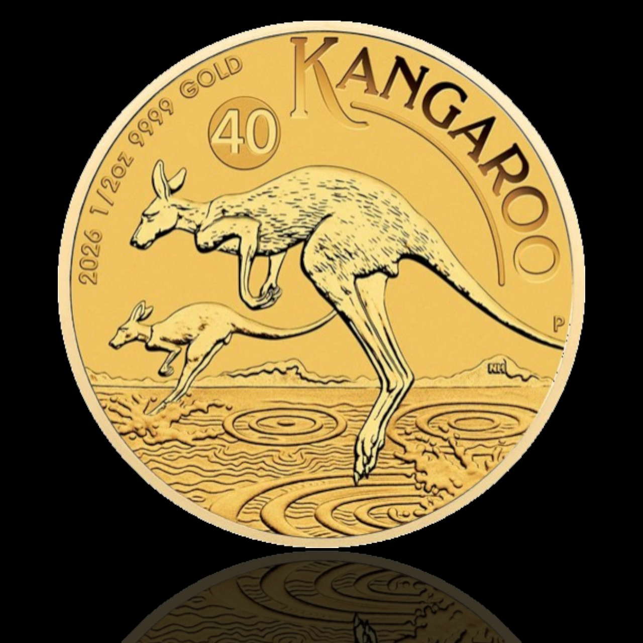 Emblema și simbolul național al Australiei – cangurul – este sursă de inspirație pentru întreaga colecție de monede de aur cu același nume, oferite de Casa de Monede din Perth. Aceasta se bucură de o reputație excelentă în întreaga lume. Mamiferul marsupial este detaliat pe moneda de 1/2 uncie aur din 2022, iar pe reversul monedei se află portretul istoric al reginei Elisabeta a II-a.