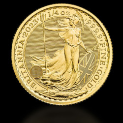 Reprezentând războinicul Britannia, asociată de mult cu Regatul Unit, această monedă de aur de 1/4 oz emană putere și măreție. Emisă pentru prima dată în 1987, moneda de aur Britannia de 1/4 oz este la mare căutare și conține 1/4 uncie troy de aur de 24 de carate cu o valoare nominală de 25 GBP. Cu Regina Elisabeta a II-a pe avers și Britannia pe revers, această monedă reprezintă istoria Marii Britanii cu actualul monarh. Moneda de aur din 2022 include caracteristici de securitate introduse pentru prima dată în 2021. Cu o imagine latentă, animație de suprafață, linii de colorare și microtext, această Britannia de aur de 1/4 oz este una dintre cele mai sigure monede din jur.