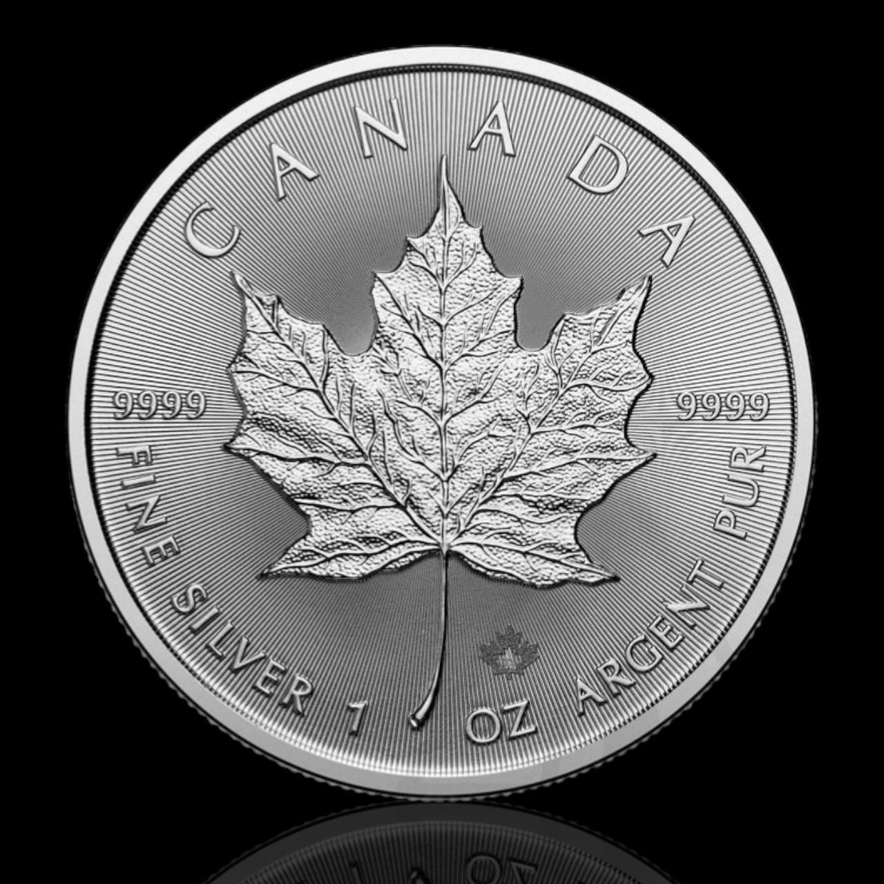 Pe revers se regăsește imaginea deja cunoscută a frunzei de arțar zaharat – simbolul național al Canadei. Designul lui Walter Ott este spectaculos, iar atenția sa la detalii este remarcabilă: textura frunzei, forma unică și nervurile sale sunt redate cu o precizie uimitoare. Această parte include de asemenea tipul de metal, greutatea și puritatea. A fost adăugată și o caracteristică de securitate suplimentară: fiecare monedă conține un marcaj secret unic, cu microgravura anului emiterii, vizibil doar cu o lupă. Monetăria Regală Canadiană deține în exclusivitate această tehnologie împotriva falsificării.