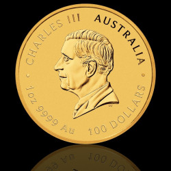 Aversul monedei poartă portretul Majestății Sale Regele Charles al III-lea, creat de Dan Thorne. Realizat într-un stil elegant și demn, acesta urmează tradiția oficială a monedelor australiene. În jurul portretului sunt plasate inscripțiile cu valoarea nominală de 100 AUD, anul emisiunii și datele privind puritatea și greutatea metalului prețios.