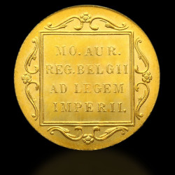 Pe revers se află un pătrat decorativ cu textul: „MO. AUR. REG. BELGII AD LEGEM IMPERII”, care înseamnă: „Monedă de aur a Regatului Olandei conform legii imperiului”.