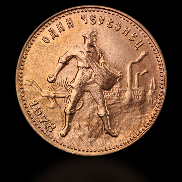 Aceste ruble din aur, denumite Chervonets, au fost emise între anii 1923 și 1978, asemenea monedelor Chervonets originale bătute începând cu anul 1701, în timpul domniei lui Petru cel Mare. Numele provine și de la culoarea lor roșiatică distinctivă – „червонец” în rusă înseamnă și „monedă roșie”.