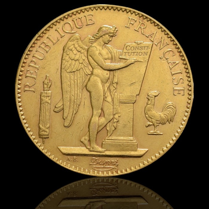 Monedă de Aur 100 Franci Francezi Genius, cunoscută și sub denumirea de „Moneda Îngerului Norocului”, nu este doar un activ financiar, ci și un simbol istoric al Franței. Considerată un talisman al norocului, fericirii și bogăției, ea este un martor al epocii în care Franța a fost una dintre cele mai mari puteri mondiale în secolele XIX și XX.
