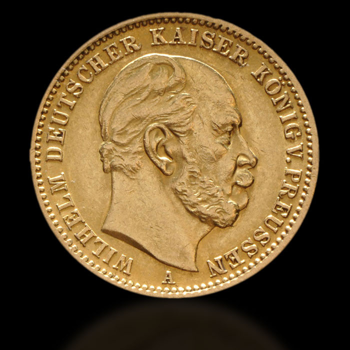 Această monedă de aur este fabricată din aur pur de 0,900 și cântărește 7,96 grame, având un diametru de 22,5 mm. A fost bătută între 1871 și 1888, în perioada unor cataclisme politice și economice din Germania, care a fost martora reunificării țării și ascensiunii Imperiului German.