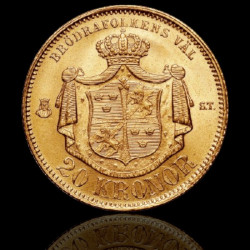 Moneda de aur de 20 coroane suedeze cu chipul regelui Oscar II este o emisiune bătută în perioada 1872–1907. A fost produsă de Kungliga Myntverket – monetăria regală a Suediei. Moneda are greutatea de 8,96 g, conține 8,06 g aur pur cu titlul 900/1000, diametru de 22,5 mm și grosime de 1,6 mm. Muchia este zimțată, iar valoarea nominală – 20 coroane suedeze.