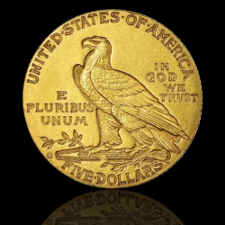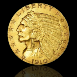 Moneda de aur de 5 dolari cu cap de indian a fost bătută între 1908 și 1916, iar ultima dată în 1929. Acest lucru o face parte dintr-una dintre cele mai scurte, dar mai impresionante serii din istoria monedelor americane. Proiectată de faimoasa sculptoare Bella Lyon Pratt, moneda impresionează prin portretul realist al unui șef indian pe avers și cu vulturul american mândru - simbol al puterii și libertății - pe revers. Stilul încastrat al execuției o distinge clar de toate celelalte monede ale epocii.